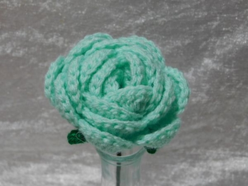 Single crochet rose measuring approx. 9cm across x 27cm long. Vase not included.