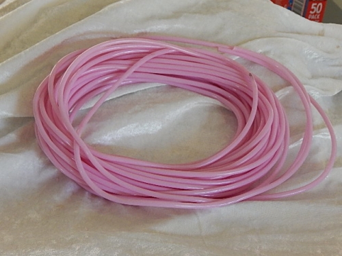 Plastic tubing used for covering the hook of knitted coat hangers.
